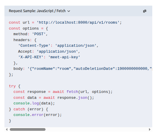 OpenVidu Meet provides a REST API for managing rooms and recordings programmatically from your application's backend. As a general rule, any action that is available in OpenVidu Meet UI for rooms and recordings can also be performed using the REST API.