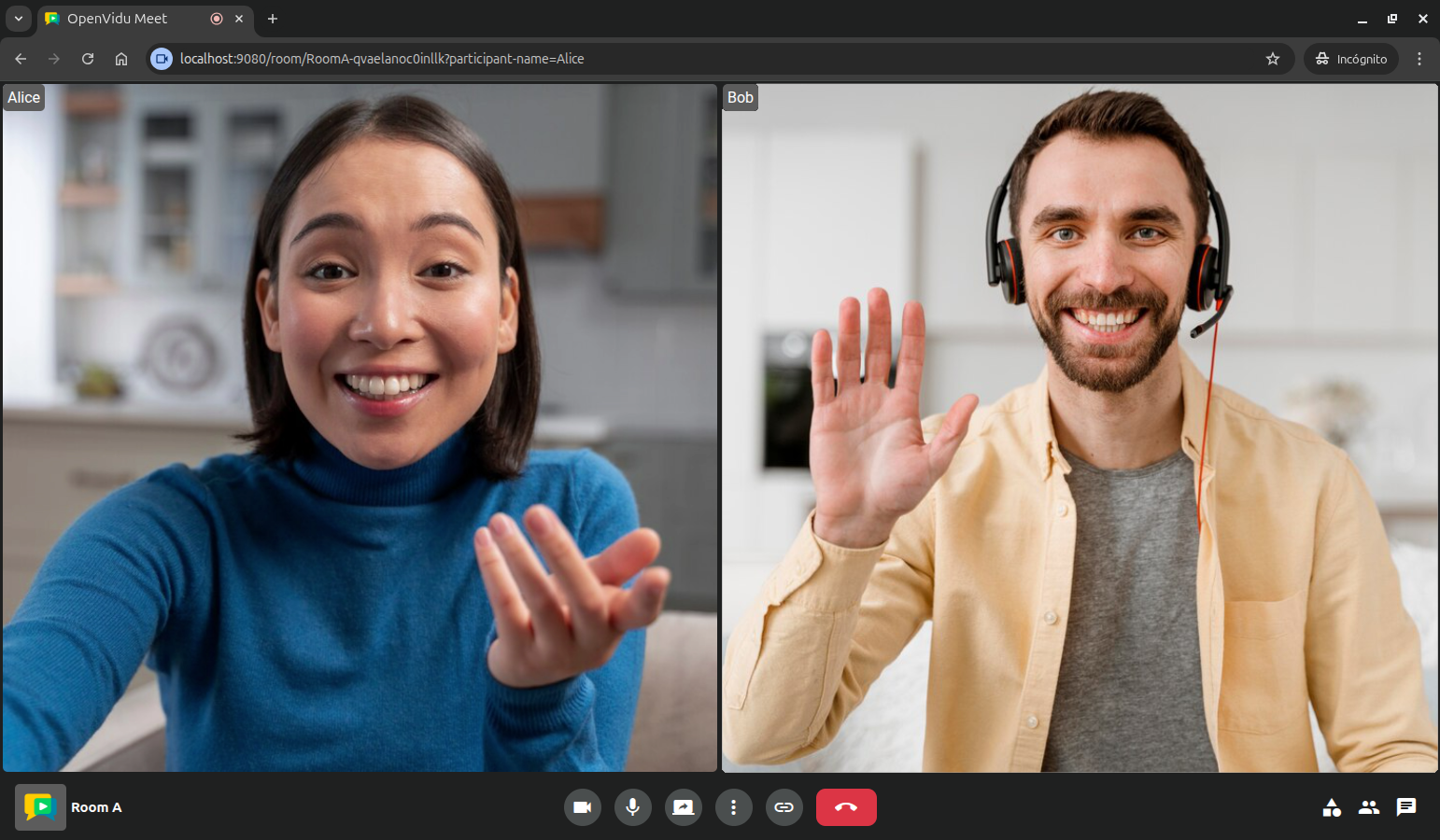 https://192-168-1-100.openvidu-local.dev:6443(replacing192-168-1-100with your actual private IP) on the computer where you started the tutorial or any device in the same network.